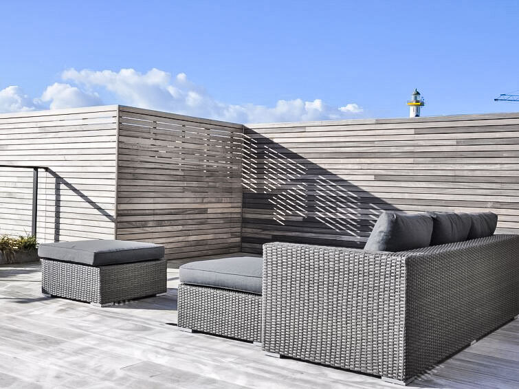 "Havenzicht", 3-Zimmer-Wohnung 125 m2 im 6. Stock. Modern eingerichtet: Eingang mit sep. WC und G-Heizung. Wohn-/Esszimmer mit Esstisch, TV, Digital-TV, Internationale TV-Sender und Stereoanlage. Ausgang zur Terrasse. 1 Zimmer mit 1 x 2 Etagenbetten (90 cm, Länge 200 cm). 1 Doppelzimmer mit 1 Doppelbett (180 cm, Länge 200 cm), TV. Offene Küche (Geschirrspüler, 4 Glaskeramikplatten, elektrische Kaffeemaschine, Kombinationsmikrowelle). Dusche, Doppelwaschbecken. Grosse Terrasse 60 m2. Terrassenmöbel, Sitzplatz, Abstellkammer. Panoramasicht auf das Meer, den Hafen und die Stadt. Zur Verfügung: Waschmaschine, Haartrockner. Internet (Wireless LAN, gratis). Garage Nr. 10 auf dem Grundstück. Bitte beachten: Nichtraucher-Haus. Rauchmelder, Feuerlöscher. Projekt in voller Entwicklung. Geniessen Sie als einer der ersten von dieser Top-Lage zum jetzt niedrigen Preis!
