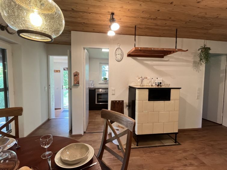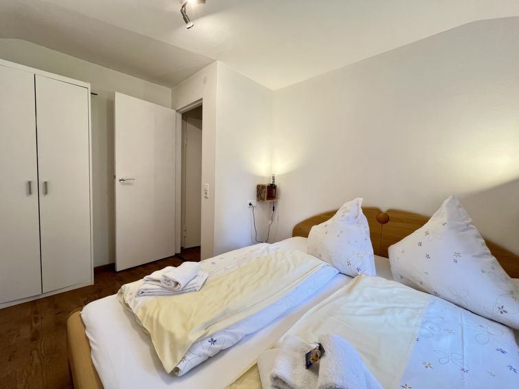 "Rothüsli 16", 3-Zimmer-Haus 60 m2. Renoviert im Jahre 2023, schön und gemütlich eingerichtet: Wohn-/Esszimmer mit Sat-TV (Flachbildschirm), Holzofen. Ausgang zum Garten, zur Terrasse. 1 Doppelzimmer mit 1 Doppelbett (2 x 90 cm, Länge 200 cm). 1 Zimmer mit 2 x 1 Etagenbetten (90 cm, Länge 200 cm). Kleine Küche (Backofen, 4 Glaskeramikplatten, Toaster, Wasserkocher, elektrische Kaffeemaschine). Bad, sep. WC. E-Heizung, Holzheizung. Holzdielenboden. Grosse Terrasse. Terrassenmöbel. Schöne Sicht auf den Garten und den Wald. Zur Verfügung: Fliegengitter, Holz (gratis). Internet (Wireless LAN, gratis). Bitte beachten: Nichtraucher-Haus. Für den Gepäcktransport zum Haus (Fußweg) steht ein Bollerwagen zur Verfügung. Autofreies Feriendorf!