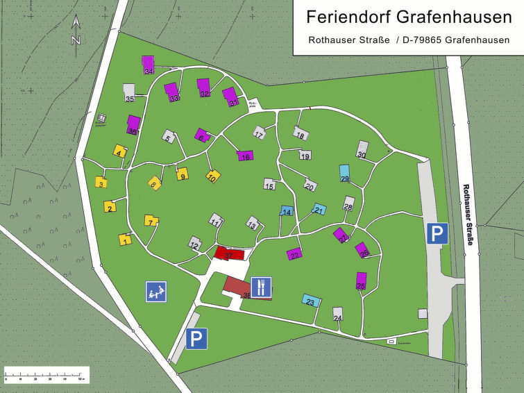 Grafenhausen / Rothaus 8 km von Schluchsee: Kleines, gemütliches Feriendorf "Grafenhausen / Rothaus". 26 Häuser im Ferienresort. 2 km vom Zentrum von Grafenhausen, im Bezirk Rothauser Land, ruhige, sonnige Lage, direkt am Waldrand, 8 km vom See, 1 km vom Skigebiet, im Grünen. Zur Mitbenutzung: naturbelassenes Grundstück mit Pflanzen und Bäumen, Wiese. Feuerstelle, Kinderspielplatz (Rutschbahn, Schaukel, Sandkasten). In der Anlage: Empfang, Restaurant, Einstellraum für Fahrräder, Waschmaschine (extra), Wäschetrockner (extra). Zentralparkplätze. Lebensmittelgeschäft 8 km, Supermarkt 8 km, Bushaltestelle 400 m, Bahnstation 8 km, Strandbad 2.5 km, Badesee "Schlüchtsee" 2.5 km, See Schluchsee 8 km. Golfplatz (18 Loch) 15 km, Wanderwege ab Haus, Radweg 1 m, Skilift 1 km, Skipisten 1 km, Schlittelbahn 1 km, Langlaufloipe 1 km. Nahe gelegene Sehenswürdigkeiten: Heimatmuseum Hüsli 1.2 km, Staatsbrauerei Rothaus 2 km, Schlühwana-Natur-Erlebnispark 1 km, Schwarzwaldhaus der Sinne 2 km, Criolla Gestüt 2.5 km, Hochfirst-Schanze 26 km. Bekannte Skigebiete sind gut erreichbar: Rothaus 1 km, Feldberggebiet 23 km. Bekannte Seen in der Umgebung sind gut erreichbar: Schluchsee 8 km, Titisee 23 km. Wandergebiete: Rothauser Land, Schluchseegebiet, Feldberggebiet, Hotzenwald, Schwarzwald. Bitte beachten: autofreie Ferienanlage.