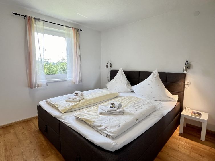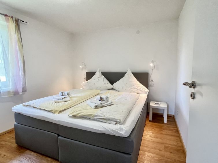 "Rothüsli 35", 4-Zimmer-Haus 70 m2. Hell, renoviert im Jahre 2023, schön und gemütlich eingerichtet: Wohn-/Esszimmer mit Sat-TV (Flachbildschirm), Holzofen. Ausgang zum Garten, zur Terrasse. 1 Doppelzimmer mit 1 Doppelbett (180 cm, Länge 200 cm). 1 Doppelzimmer mit 1 Doppelbett (180 cm, Länge 200 cm). 1 Zimmer mit 2 x 1 Etagenbetten (90 cm, Länge 200 cm). Kleine Küche (Backofen, Geschirrspüler, 4 Glaskeramikplatten, Toaster, Wasserkocher, elektrische Kaffeemaschine). Sep. WC, Bad/Dusche/WC. E-Heizung, Holzheizung. Holzdielenboden. Grosse Terrasse. Terrassenmöbel, Abstellkammer. Schöne Sicht auf die Berge, das Tal, den Garten und den Wald. Zur Verfügung: Holz (gratis). Internet (Wireless LAN, gratis). Bitte beachten: Nichtraucher-Haus. Für den Gepäcktransport zum Haus (Fußweg) steht ein Bollerwagen zur Verfügung. Autofreies Feriendorf!
