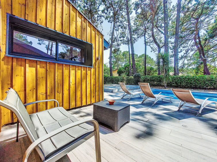 Villa "Villa les Verdiers". 1 km vom Meer, 1 km vom Strand. Zur Alleinbenutzung: Grundstück, Garten 1'265 m2 (eingezäunt), Schwimmbad beheizt (9 x 4 m, 110 - 140 cm tief, saisonale Verfügbarkeit: 01.Jun. - 30.Sep.). Aussendusche, Poolhaus, Parkplatz (für 4 Autos) auf dem Grundstück. Carport. Einkaufsgeschäft, Supermarkt 200 m, Restaurant 800 m, Bäckerei 200 m, Bushaltestelle 400 m, Bahnstation "La Teste De Buch" 26 km, Sandstrand "Plage du Vivier" 1 km. Golfplatz (18 Loch) 6 km, Surfschule 230 m, Segelschule 10 km, Tennis 850 m, Reitstall 8.2 km. Nahe gelegene Sehenswürdigkeiten: La Teste De Buch 26 km, Arcachon 27 km, Dune du Pilat 17 km. Bekannte Seen in der Umgebung sind gut erreichbar: Lac de Biscarosse 9 km.