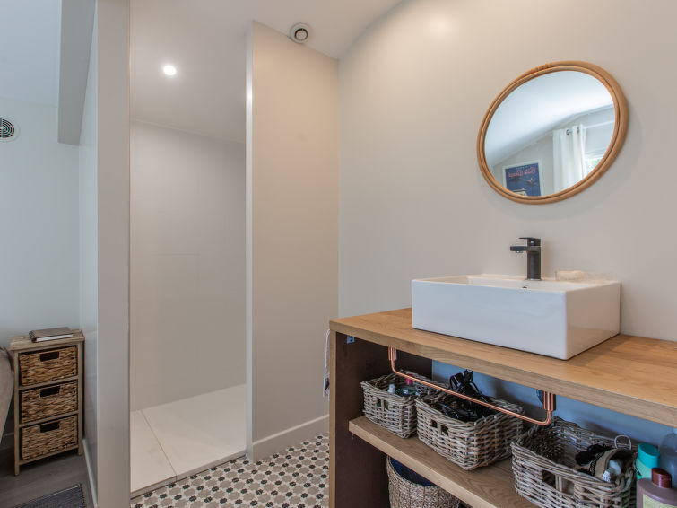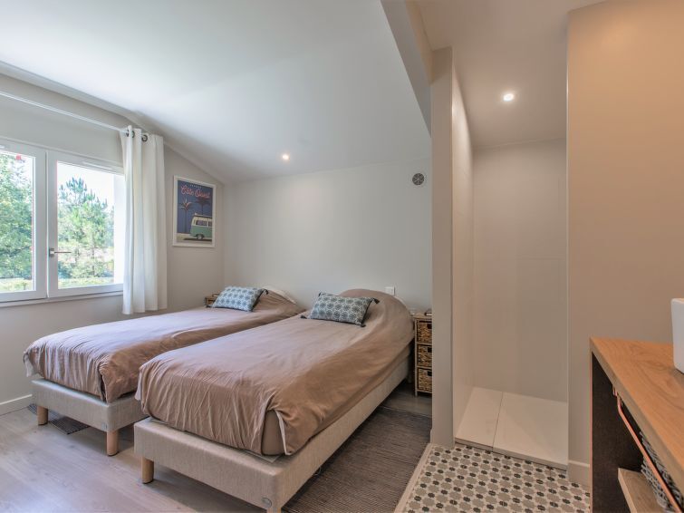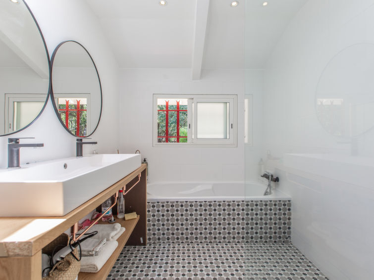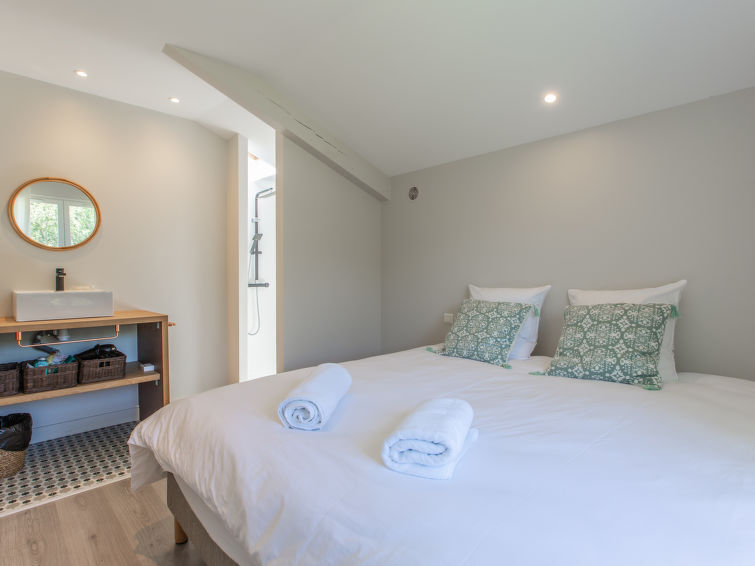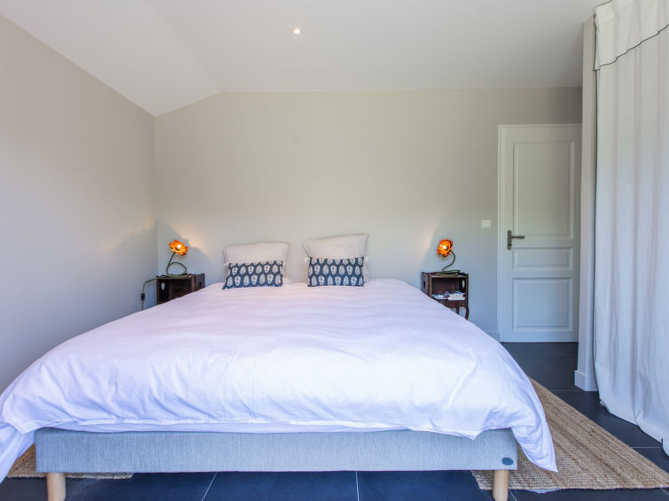 5-Zimmer-Villa 200 m2 auf 2 Stockwerken. Geräumig und hell, komfortabel und schön eingerichtet: grosses Wohn-/Esszimmer 70 m2 mit offenem Kamin und Esstisch. Ausgang zum Garten, zur Terrasse. Kleines Büro mit TV (Flachbildschirm). 2 Zimmer, jedes Zimmer mit 1 franz. Bett (180 cm, Länge 200 cm). Offene Küche (Backofen, Geschirrspüler, 3 Induktionskochplatten, Toaster, Wasserkocher, Mikrowelle, Tiefkühler, elektrische Kaffeemaschine, Kapseln für die Kaffeemaschine (Nespresso) extra) mit Esstisch. Bad/Dusche, sep. WC, Doppelwaschbecken. Obergeschoss: 2 Zimmer, jedes Zimmer mit 2 Betten (90 cm, Länge 200 cm), Waschbecken und Dusche. Grosse Galerie. Ausgang zum Balkon. Sep. WC. Heizung, Klimaanlage. 2 Balkone, Südwestlage und Nordostlage, 2 Terrassen teilweise überdacht, Südwestlage und Nordostlage. Terrassenmöbel, Gartengrill (mobil), Liegestühle (8). Schöne Sicht auf den See, das Schwimmbad und den Wald. Zur Verfügung: Waschmaschine, Wäschetrockner, Bügeleisen, Kinderhochstuhl, Babybett, Haartrockner. Internet (Wireless LAN, gratis). Bitte beachten: Nichtraucher-Haus. Rauchmelder. Anstelle eines abgeschlossenen Schlafzimmers befinden sich manche Schlafplätze in einem offenen Bereich (Galerie, Nische etc.). Inserat einer Privatperson nach Artikel 155, IV, CGI.