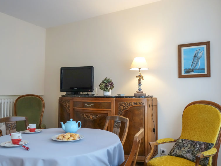Reihenhaus "Bel Air". Exzellente Lage: Absolut zentral und dennoch ruhig, 650 m vom Meer, 3.9 km vom Strand. Zur Alleinbenutzung: gepflegter Garten 400 m2 (eingezäunt) mit Pflanzen und Bäumen. Terrasse, Gartenmöbel, Grill. Im Hause: Einstellraum für Fahrräder. Einzelgarage. Einkaufsgeschäft, Lebensmittelgeschäft 300 m, Supermarkt 1.6 km, Bäckerei, Café 300 m, Bushaltestelle "Cancale stade" 270 m, Sandstrand "Plage Port Mer" 3.7 km, Tauchzentrum 15 km, Freibad 15 km, Thermalbad "Les Thermes Marins de Saint Malo" 14.1 km. Sporthafen 2.1 km, Golfplatz (18 Loch) 25 km, Tennis 600 m, Reitstall 1.8 km. Nahe gelegene Sehenswürdigkeiten: Les Parcs à Huitres 1.3 km, La Pointe du Grouin 4.5 km, Saint Malo Intra Muros 16 km, Le Grand Aquarium 18.5 km, Dinard 23 km, Le Mont Saint Michel 48 km. Bitte beachten: Das 1. Stockwerk ist geschlossen und nicht bewohnt. Die Schlüsselübergabe findet bei der Agentur Interhome in Cancale statt.