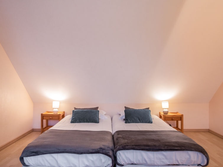 2-Zimmer-Wohnung 52 m2 auf 2 Stockwerken im 3. Stock. Wohn-/Esszimmer mit TV. Ausgang zum Balkon, Richtung Süden. 1 Zimmer mit 2 Betten (80 cm). Kochnische (Backofen, Geschirrspüler, 4 Glaskeramikplatten, Mikrowelle). Dusche, sep. WC. Obergeschoss: abgeschrägte Galerie mit 2 Betten (90 cm). E-Heizung. Balkon 5 m2. Balkonmöbel. Zur Verfügung: Waschmaschine. Internet (Wireless LAN, extra). Parkplatz. Bitte beachten: Rauchmelder. Anstelle eines abgeschlossenen Schlafzimmers befinden sich manche Schlafplätze in einem offenen Bereich (Galerie, Nische etc.).