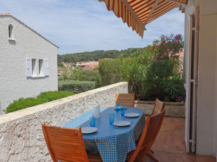 La Madrague: Residenz "Hameau la Madrague". Erhöhte Lage, 200 m vom Meer. Parkplatz (beschränkte Anzahl). Lebensmittelgeschäft 100 m, Supermarkt 3 km, Restaurant 200 m, Bushaltestelle "Le Viguier" 2.1 km, Bahnstation "Saint Cyr les Lecques-La Cadière" 3.1 km, Sandstrand "La madrague" 300 m, Felsstrand "la reinette" 200 m. Sporthafen 300 m, Golfplatz (18 Loch) 4 km, Tennis 2 km. Nahe gelegene Sehenswürdigkeiten: Aqualand 3 km. Wandergebiete: Sainte Baume, Sainte Victoire, Calanques Port-Cros, Porquerolles, Ile verte, Embiez, Figuerolles, Cassis. Bitte beachten: Die Schlüsselübergabe findet bei der Agentur INTERHOME in St Cyr /La Madrague statt. Das Foto ist nur ein Hausbeispiel. Weitere Unterkünfte sind buchbar. Bitte beachten Sie: Die Wohnungen sind über grosse Treppen mit vielen Stufen erreichbar. In der Residenz herrscht Fahrverbot. Das Lebensmittelgeschäft liegt 100 m entfernt. Es ist vom 1. April bis am 30. September geöffnet.