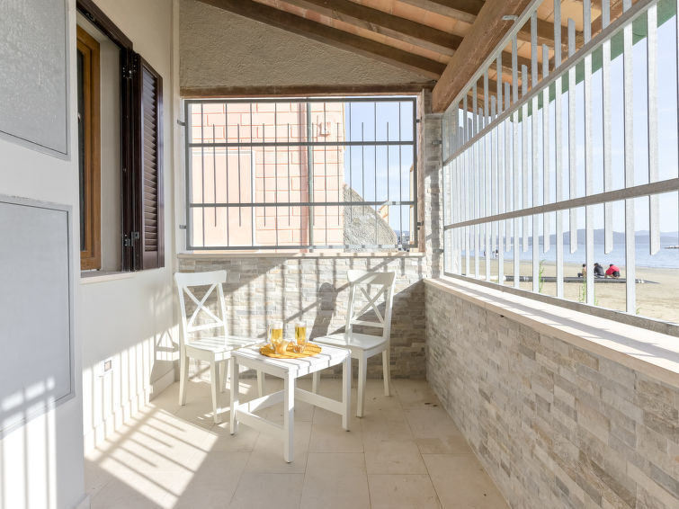 3-Zimmer-Haus 75 m2, im Erdgeschoss. Vollständig renoviert im Jahre 2025, modern und gemütlich eingerichtet: Wohn-/Esszimmer mit 1 Doppeldiwanbett, Esstisch und Küchenblock. Ausgang zur Loggia. 1 Doppelzimmer. 1 Zimmer mit 2 Betten. Offene Küche (Backofen, Geschirrspüler, Toaster, Wasserkocher, Mikrowelle, elektrische Kaffeemaschine). Ausgang zur Loggia. 2 Duschen/Bidet/WC. Klimaanlage, Warmluftheizung. Garten. Terrassenmöbel, Loggia. Herrliche Sicht auf das Meer. Zur Verfügung: Waschmaschine, Haartrockner. Internet (WLAN, gratis). Bitte beachten: Nichtraucher-Unterkunft. Maximal 1 Haustier/Hund erlaubt. Eigener Eingang. IT053009C2GAMUFRYE