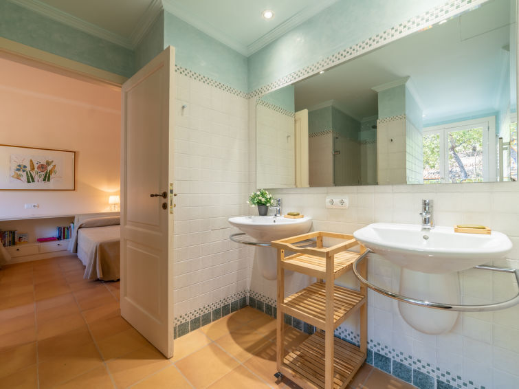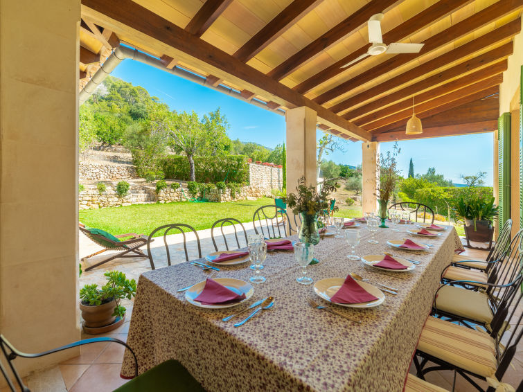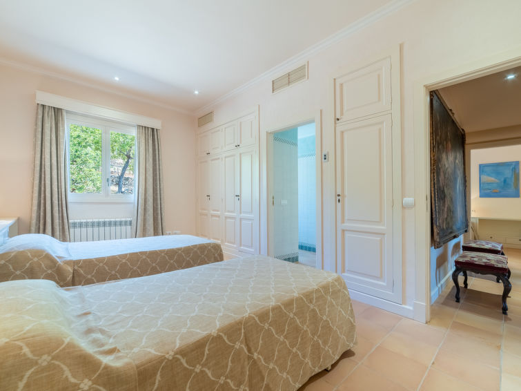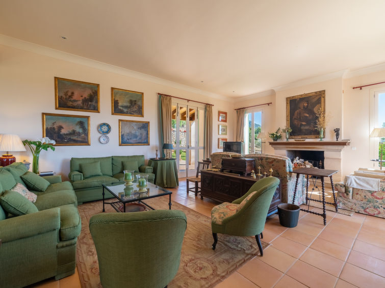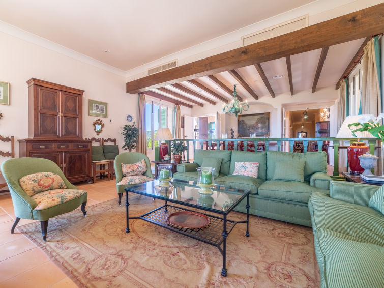 "Son Maguet", 7-Zimmer-Villa 400 m2, im ebenerdigen Untergeschoss. Objekt geeignet für 12 Erwachsene. Geräumig und hell, sehr komfortabel und geschmackvoll eingerichtet: grosses Wohn-/Esszimmer mit Panoramafenster mit Esstisch, TV, Flachbildschirm und Klimaanlage. Ausgang zum Gartensitzplatz, zum Schwimmbad. 2 Doppelzimmer mit Panoramafenster, jedes Zimmer mit 1 franz. Bett und Klimaanlage. 4 grosse Doppelzimmer mit Panoramafenster, jedes Zimmer mit 2 Betten (90 cm), Klimaanlage. Wohnküche (Backofen, Geschirrspüler, 3 Glaskeramikplatten, Mikrowelle, Tiefkühler, elektrische Kaffeemaschine) mit Esstisch, Klimaanlage. Ausgang zum Gartensitzplatz, zum Schwimmbad. 4 Bäder/Duschen/WC. Heizung. Grosser Gartensitzplatz, Rasen. Terrassenmöbel, Elektrogrill, Liegestühle, Loggia. Sehr schöne Sicht auf die Berge und die Landschaft. Zur Verfügung: Waschmaschine, Bügeleisen, Haartrockner. Internet (WLAN, gratis). Parkplatz (eingezäunt). Bitte beachten: geeignet für Familien. Nichtraucher-Haus. ETV/4507 // Reg. Nr.: ESFCTU00000702200047054900000000000000000000ETV/45072