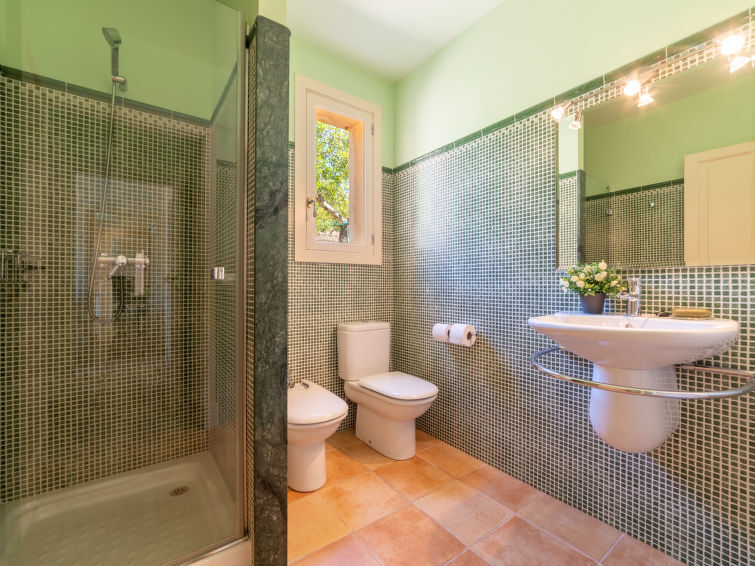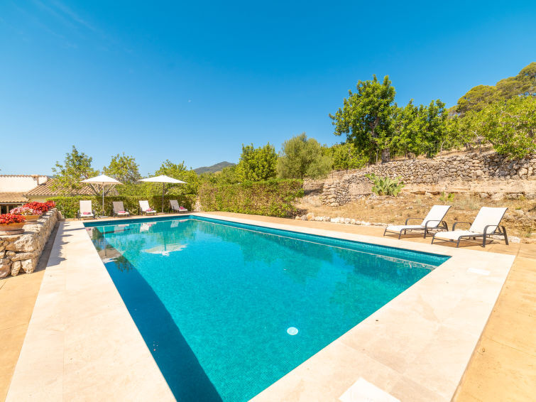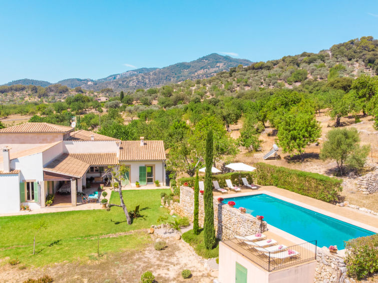 Caimari 1 km von Selva: Grosse, sehr komfortable Villa "Son Maguet", Baujahr 2010, umgeben von Bäumen, Wiesen und Feldern. Ausserhalb des Ortes, 1 km vom Zentrum von Caimari, ruhige, sonnige Lage auf einem Hügel, 100 m vom Waldrand, 25 km vom Meer, 25 km vom Strand, im Grünen. Zur Alleinbenutzung: naturbelassenes Grundstück (eingezäunt), grosser, schöner terrassierter Garten mit Rasen und Bäumen, Wiese, Schwimmbad eckig (10 x 5 m, saisonale Verfügbarkeit: 01.Jan. - 31.Dez.). Dusche/WC im Poolbereich, Aussendusche, Pergola, Terrasse, Gartenmöbel. Im Hause: Internetzugang, Wireless LAN, Einstellraum für Fahrräder, Zentralheizung, Klimaanlage, Waschmaschine. Zufahrt (Naturweg). Parkplatz beim Haus auf dem Grundstück. Lebensmittelgeschäft 700 m, Supermarkt, Restaurant 700 m, Bar 900 m, Bäckerei 1.2 km, Café 1 km, Biergarten 900 m, Zentrum zu Fuss in 15 Minuten erreichbar, Bushaltestelle 1 km, Sandstrand 27 km, Kieselstrand 27 km, Steinstrand 27 km, Felsstrand 27 km. Sporthafen 27 km, Jacht-Hafen 27 km, Golfplatz (18 Loch) 28 km, Surfschule 27 m, Segelschule 33 km, Tennis 1 km, Reitstall 4 km, Sportzentrum 1 km, Radweg 200 m. Bitte beachten: geeignet für Familien, geeignet für Senioren. Objekt geeignet für 12 Erwachsene Jugendgruppen nur auf Anfrage. Be- und Entladen am Ferienhaus möglich. Tiere in der Umgebung.