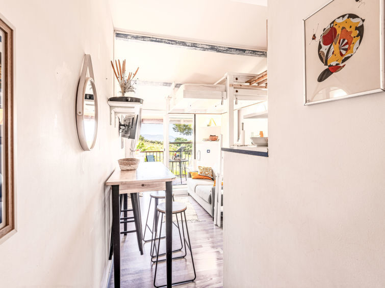"Casa Maza Corta", studio 1-kamer 20 m2 op de 1e verdieping. Eenvoudig en doelmatig ingericht: woon-/slaapkamer met 1 divanbed en 1 2-pers bed (140 cm, lengte 190 cm), eettafel. Uitgang naar het terras. Woonkeuken (2 inductiekookplaten, broodrooster, waterkoker, magnetron, elektrische koffiemachine). Douche/WC. Elektrische verwarming, air-conditioning. Klein terras overdekt, op het noorden gelegen en op het westen gelegen. Balkonmeubilair. Uitzicht op zee en de tuin. Ter beschikking: wasmachine. Internet (Internet (WiFi)). Parkeerplaats bij het huis. Rookmelders. Aanbod door een particulier volgens art. 155, IV van CGI.