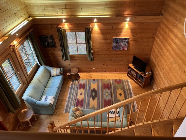 4-kamers cottage 130 m2 op 3 verdiepingen. Licht, comfortabel en met veel hout ingericht: groot hal. Open eetkamer. Uitgang naar het terras. Open woonkamer met 1 2-pers divanbed, Sat-TV, Flatscreen TV en tegelkachel. Uitgang naar de tuin. 1 2-pers. kamer. Open galerij. Uitgang naar het balkon. Open keuken (oven, afwasmachine, 4 keramische glas kookplaten, magnetron, elektrische koffiemachine). Bad/douche, aparte WC, dubbele wastafels met hoekbad. Vloerverwarming. Bovenverdieping: 1 groot 2-pers. kamer met dakraam. Houten vloeren. Balkon 10 m2, groot terras 15 m2. Terrasmeubelen, barbecue. Mooi uitzicht op de tuin, het landschap en de plaats. Ter beschikking: wasmachine, haardroger. Internet (WiFi, gratis). Niet rokers woning. Rookmelders.