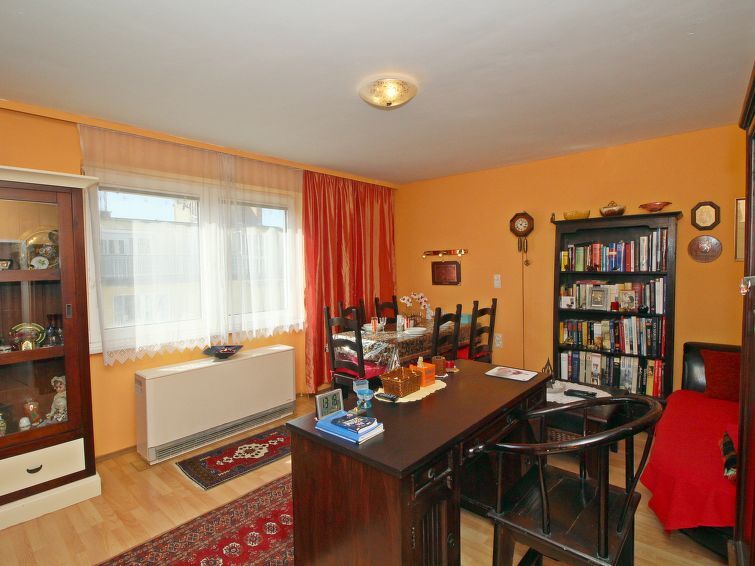 "Vienna waits for you", appartement 3-kamers 65 m2, op de bovenste verdieping. Ruim en licht, rustiek ingericht: hal. Woon-/eetkamer met eettafel en Sat-TV (Flatscreen TV), stereo-installatie. Uitgang naar het terras. 1 2-pers. kamer, venster naar het binnenplaats met Sat-TV (Flatscreen TV), ventilator. 1 kleine 2-pers. kamer met 1 2-pers bed (140 cm, lengte 200 cm). Groot, open keuken (oven, afwasmachine, 4 keramische glas kookplaten, magnetron, diepvriezer, elektrische koffiemachine, pads voor de koffiemachine (Cafissimo) extra). Badkamer, aparte WC. Houten vloeren. Klein terras 8 m2, op het zuidwesten gelegen. Zijdelings uitzicht op de stad. Ter beschikking: strijkijzer, haardroger. Internet (WiFi, gratis). Geschikt voor families. Niet rokers woning.