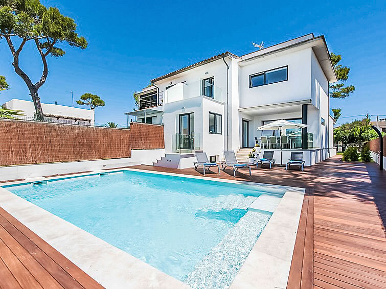 Can Picafort: Zeer groot, moderne, comfortabel huis "Marianne", van 2 verdiepingen, bouwjaar 2016. In de plaats, 250 m van het centrum van Son Baulo, rustige ligging villa wijk, 450 m van zee, 450 m van het strand. Voor alleengebruik: tuin met gazon, openluchtzwembad (8 x 4 m, seizoensgebonden beschikbaarheid: 01.Apr. - 31.Okt.) met zout-elektrolyse. Buitendouche, terras, tuinmeubelen, barbecue. In het huis: centrale verwarming, air-conditioning, wasmachine. Parkeerplaats bij het huis. Winkel 400 m, supermarkt 800 m, restaurant 400 m, bushalte 1.6 km, zandstrand 400 m. Golfterrein (18 holes) 6 km, manege 500 m, kinderspeelplaats 300 m. Attracties in de buurt: Playa y parque natural Son Real 600 m. Groepen jongeren uitsluitend op aanvraag.