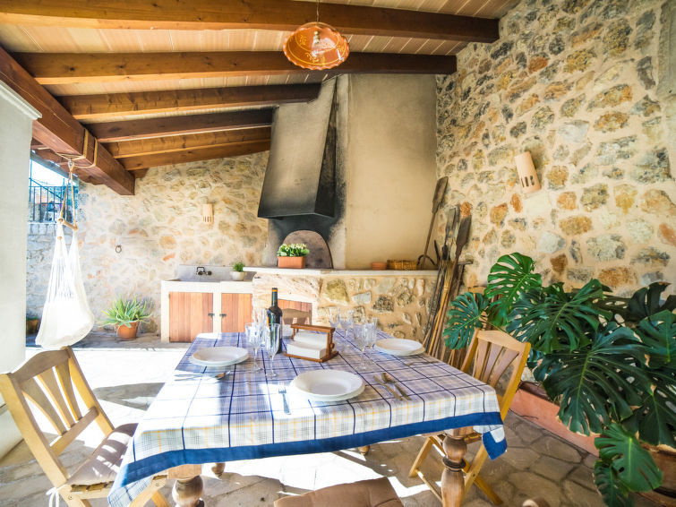 "Son Trobat", huis 7-kamers 300 m2 op 2 verdiepingen. Het objekt is geschikt voor 8 volwassenen. Ruim en licht, volledig gerenoveerd, zeer comfortabel en smaakvol ingericht: groot woonkamer met panoramavenster met open haard, Sat-TV, Digitale TV, Flatscreen TV en houtkachel. Uitgang naar het terras. 1 groot 2-pers. kamer met panoramavenster met 1 2-pers bed (180 cm, lengte 200 cm), houtkachel. Salon met panoramavenster. Woonkeuken 50 m2 (oven, afwasmachine, 3 keramische glas kookplaten, broodrooster, waterkoker, magnetron, diepvriezer, elektrische koffiemachine) met bar, eettafel, air-conditioning en heteluchtverwarming. Uitgang naar het terras. Bad/douche/bidet/WC. Bovenverdieping: 1 groot 2-pers. kamer met panoramavenster Kleedkamer met 1 2-pers bed (150 cm, lengte 200 cm), houtkachel, air-conditioning en heteluchtverwarming. 1 2-pers. kamer met panoramavenster met 1 2-pers bed (140 cm, lengte 200 cm), TV en houtkachel met 2 bedden (90 cm, lengte 200 cm). Bad/douche/bidet/WC, dubbele wastafels, hydro massage bad. Groot terras, prieel. Terrasmeubelen, barbecue, loggia, zitgelegenheid, bergruimte. Uitzicht op de plaats. Ter beschikking: wasmachine, droger, strijkijzer, kinderbed tot 2 jaar, haardroger. Internet (WiFi, gratis). Geschikt voor families. ETV13338 // Reg. Nr.: ESFCTU0000070220000675270000000000000000000ETV/133388