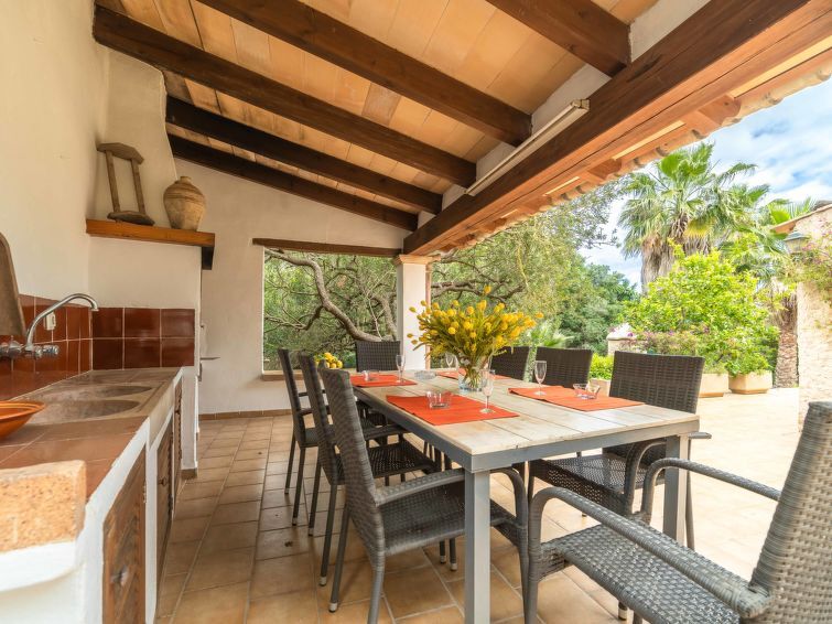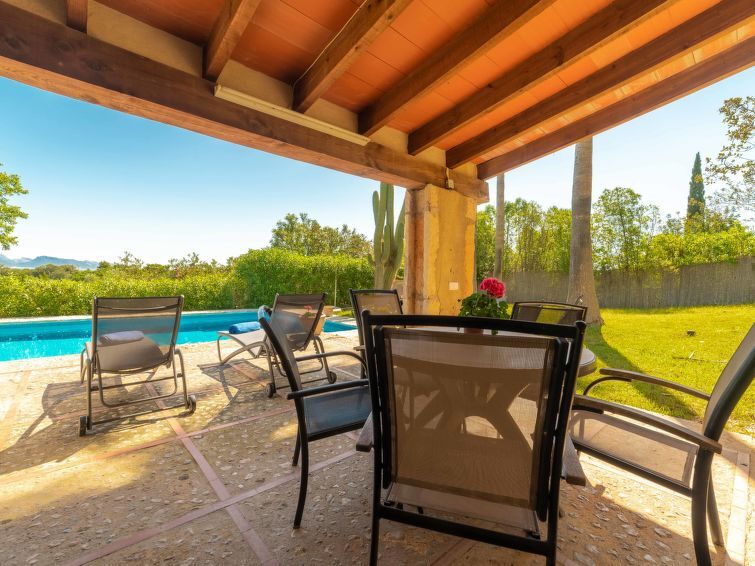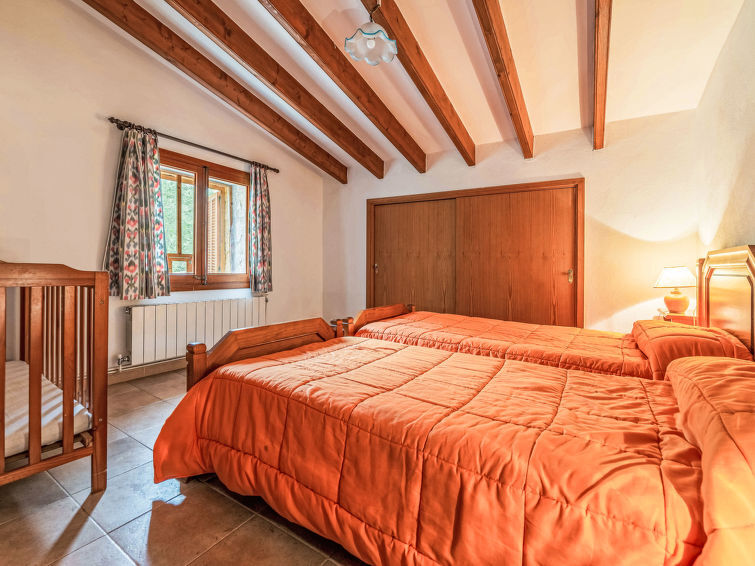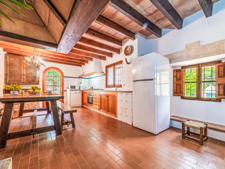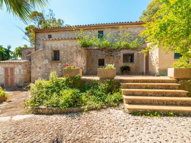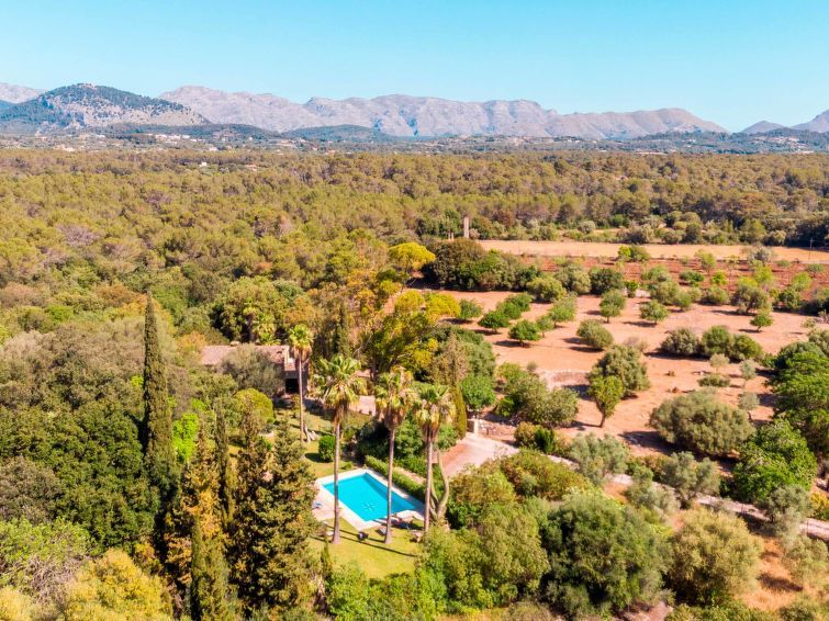 Landgoed "Can Ferre de Baix", van 2 verdiepingen, vrijstaand, omgeven door weiden en velden. 7 km van het centrum van Pollensa, 13 km van het centrum van Puerto Pollensa, 23 km van het centrum van Inca, op een heuvel, 8 km van zee. Voor alleengebruik: wild terrein 25 ha, verzorgde tuin 2.000 m2 (omheind) met gazon en bomen, openluchtzwembad (8 x 4 m, seizoensgebonden beschikbaarheid: 01.Jan. - 31.Dec.). Buitendouche, parkeerplaats op het terrein. Winkel 6 km, bushalte 2.5 km, zandstrand "Puerto de Alcúdia" 8 km. Golfterrein (9 holes) 10 km. Auto noodzakelijk. Laden en lossen van de baggage is mogelijk bij het huis.