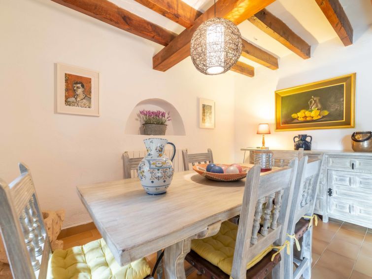 "Can Ferre de Baix", huis 6-kamers 200 m2 op 2 verdiepingen. Rustiek en gezellig ingericht: woon-/eetkamer met open haard, eettafel en Sat-TV. Woonkamer met zwedenkachel. Keuken (oven, afwasmachine, 5 kookpitten (vlammen), broodrooster, magnetron, diepvriezer, elektrische koffiemachine) met eettafel, open haard. Uitgang naar het terras. Douche/WC. Bovenverdieping: 1 kamer met 1 2-pers bed (150 cm), bad/WC en ventilator. Uitgang naar het terras. 2 kamers, elke kamer heeft 2 bedden en ventilator. 1 kamer met (150 cm), ventilator. Douche/WC, dubbele wastafels. Olie-verwarming. Verwarming alleen beschikbaar van 01.04. tot 15.05. Terras overdekt. Terrasmeubelen, barbecue, ligstoelen, zitgelegenheid, bergruimte. Mooi panoramazicht op zee en het landschap. Ter beschikking: wasmachine, kluis, strijkijzer, kinderstoel, kinderbed tot 2 jaar, haardroger. Internet (WiFi, gratis). Rookvrij huis. Maximaal 1 huisdier/hond toegestaan. L12E7808 // Reg. Nr.: ESFCTU0000070430001272020000000000000000000ETV/109956