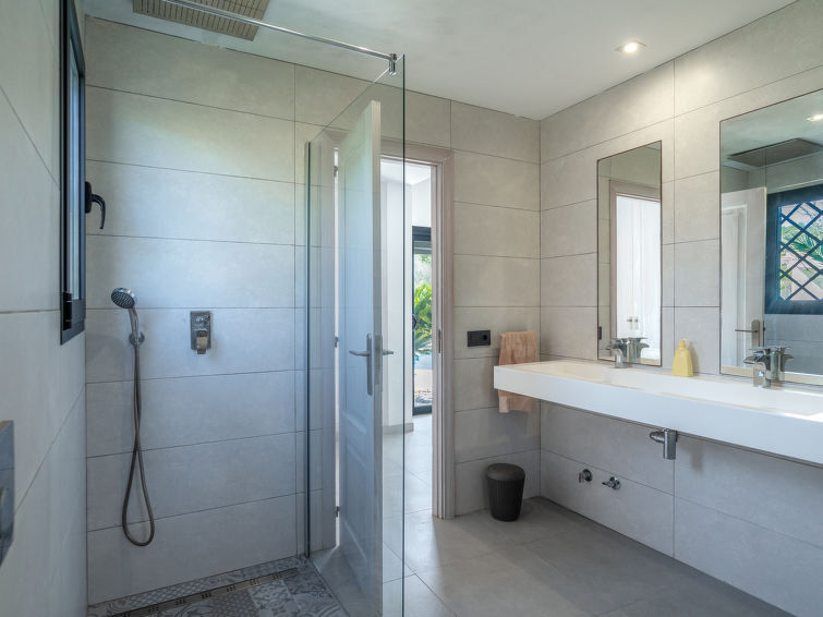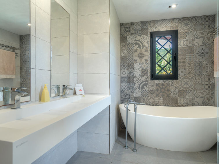 "Ca na Saurina", villa 5-kamers 200 m2 op 2 verdiepingen. Het objekt is geschikt voor 7 volwassenen. Ruim en licht, volledig gerenoveerd, zeer comfortabel en modern ingericht: groot, open woon-/eetkamer met open haard (alleen decoratie), eettafel, Digitale TV, internationale TV-zenders, Flatscreen TV, air-conditioning en heteluchtverwarming. Uitgang naar de zitplaats in de tuin, naar het zwembad. 1 groot 2-pers. kamer met 1 2-pers bed (160 cm, lengte 200 cm), bad/douche/WC, dubbele wastafels, air-conditioning en heteluchtverwarming. Uitgang naar de zitplaats in de tuin. 1 2-pers. kamer met 1 2-pers bed (150 cm, lengte 190 cm), air-conditioning en heteluchtverwarming. Uitgang naar de zitplaats in de tuin. 1 2-pers. kamer met 1 x 2 stapelbedden (90 cm, lengte 190 cm), douche/WC, dubbele wastafels, air-conditioning en heteluchtverwarming. 1 kamer met 1 bed (90 cm, lengte 190 cm), air-conditioning en heteluchtverwarming. Keuken (5-pits kookplaat, oven, afwasmachine, broodrooster, waterkoker, magnetron, diepvriezer, elektrische koffiemachine, kookeiland) met air-conditioning en heteluchtverwarming. Uitgang naar de zitplaats in de tuin. Aparte WC. Bovenverdieping: (wenteltrap) galerij met afgeschuinde daken. Ruime zithoek in de tuin, prieel. Terrasmeubelen, barbecue, ligstoelen (6), loggia. Beperkt uitzicht op de bergen. Ter beschikking: wasmachine, droger, strijkijzer, kinderstoel, kinderbed tot 2 jaar, haardroger. Internet (WiFi, gratis). Parkeerplaats bij het huis. Rookvrij huis. Brandblusser. Het zwembad genoemd in de beschrijving is voor privé gebruik. ETV/10554 // Reg. Nr.: ESFCTU0000070300002093420000000000000000000ETV/105547