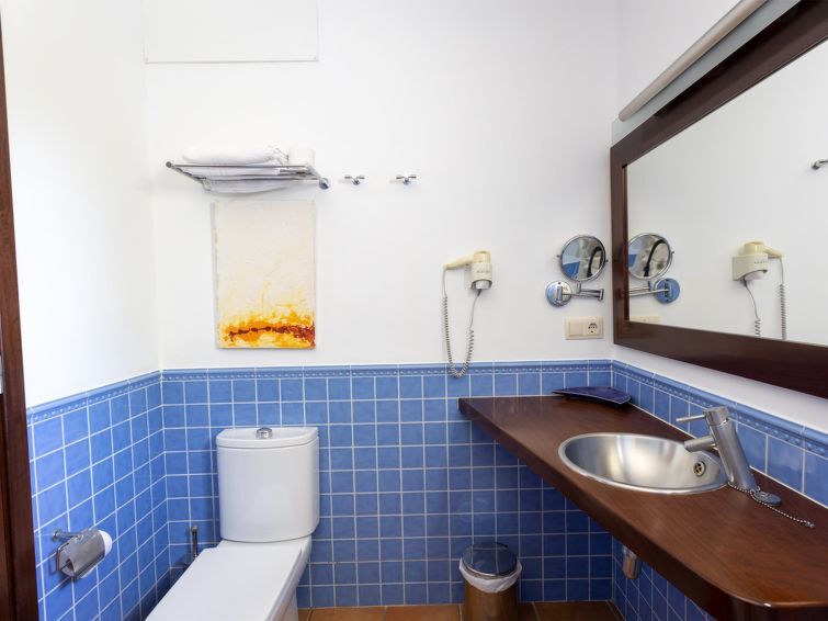 Son Bou: Mooi, comfortabele, luxueuze villa "Villas Finesse Type 1", omgeven door bomen. Aan de rand van de plaats Son Bou, rustige, zonnige ligging op een heuvel, 2 km van zee. Voor alleengebruik: terrein, tuin, openluchtzwembad (4 x 10 m, seizoensgebonden beschikbaarheid: 30.Apr. - 24.Okt.). Buitendouche, patio, terras. In het huis: internetaansluiting, Internet (WiFi), air-conditioning, wasmachine. Parkeerplaats op het terrein. Winkel 2 km, levensmiddelenwinkel 2 km, supermarkt 1 km, restaurant 200 m, bushalte "Son Bou" 450 m, zandstrand 2 km. Golfterrein (18 holes) 20 km, tennis 1.9 km, manege 1 km, kinderspeelplaats 300 m. Auto noodzakelijk. Geschikt voor families, geschikt voor senioren op aanvraag. Het objekt is geschikt voor 6 volwassenen groepen jongeren uitsluitend op aanvraag. Laden en lossen van de baggage is mogelijk bij het huis. Vliegveld 20 km van het huis.