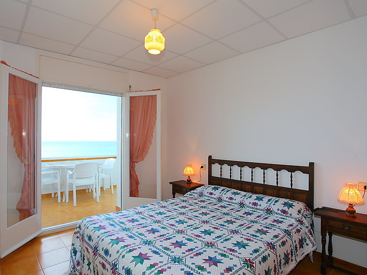 Appartement 3-kamers 85 m2, op de begane grond. Woon-/eetkamer 25 m2 met 1 2-pers divanbed, Digitale TV en DVD. 1 kamer met 1 2-pers bed. Uitgang naar het balkon. 1 kamer met 2 bedden. Uitgang naar het balkon. Keuken (oven, afwasmachine, diepvriezer). Bad/bidet/WC, douche/WC. Geen verwarmingsmogelijkheid. Terras 11 m2. Terrasmeubelen. Panoramazicht op zee. Ter beschikking: wasmachine. Parkeerplaats nr. 5. TV alleen ES, FR. Toegang tot het appartement is via een trap van 50 treden. HUTG004591
