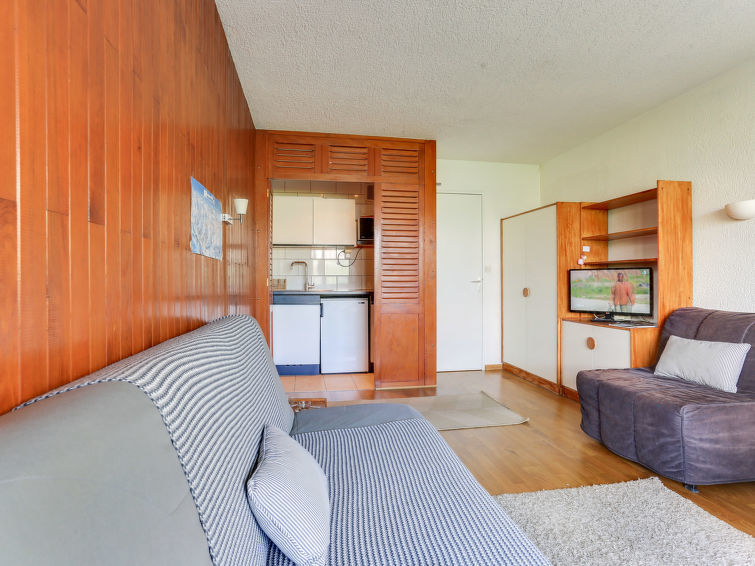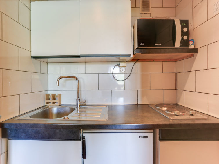 Studio 1-kamer 27 m2 op de 6e verdieping. Woon-/eetkamer met 1 2-pers divanbed (160 cm), TV. Hal met 1 x 2 stapelbedden (80 cm, lengte 190 cm). Open keuken (2-pits kookplaat, magnetron, grill). Bad/WC. Balkon, op het noordoosten gelegen. Zeer mooi panoramazicht op het meer en de bergen. Ter beschikking: Internet (Internet (WiFi), extra). Niet rokers woning. Rookmelders.