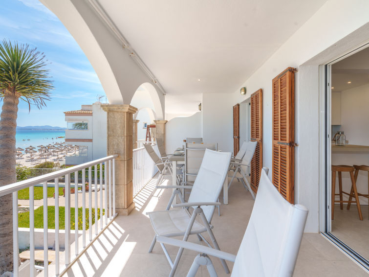 Port Alcúdia: Zeer mooi, comfortabel flatgebouw "Albers Sea Views". Rustige, zonnige ligging, directe toegang tot het strand. Voor alleengebruik: buitendouche, prieel, terras, tuinmeubelen, barbecue. In het huis: internetaansluiting, bergruimte voor fietsen, zonneterras, centrale verwarming, air-conditioning, alarmsysteem, wasmachine. Supermarkt 350 m, restaurant 500 m, bar 400 m, bakkerij 300 m, fietsverhuur 220 m, bushalte 400 m, zandstrand "Playa de Alcúdia" 50 m, rotsstrand "Playa de Alcanda" 6 km. Jachthaven 3.4 km, golfterrein (18 holes) 6.4 km, tennis 3.2 km, manege 2.6 km, sportcentrum 3.2 km, wandelroutes 2.5 km vanaf het huis, fietspad 2 km. Attracties in de buurt: Alcúdia Old Town 4.6 km, Playa de Muro 1 km, Can Picafort 7.5 km, Palma City 51 km, Playa y Faro de Formentor, Mallorca Fashion Outlet & Cinemas 42 km. Bekende meren kunnen gemakkelijk worden bereikt: Lago Mayor 400 m. Wandelgebied Puig de Sant Martí 2.5 km, Parque Natural Albufera de Mallorca 2.3 km, Atalaya de Alcúdia 10 km. Het objekt is geschikt voor 6 volwassenen. De eigenaar accepteert geen jeugdgroepen. Vliegveld 56 km van het huis. De omgeving is gevoelig voor geluidsoverlast. Gelieve geen lawaai te maken en de rust te bewaren.