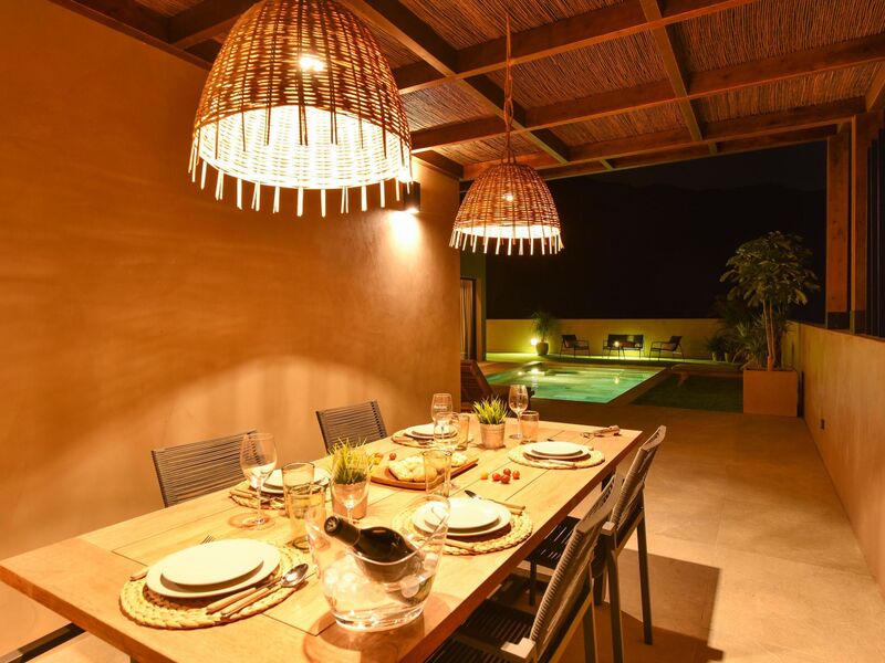"Almadies Tauro", huis 5-kamers 180 m2. Comfortabel en modern ingericht: woon-/eetkamer met Digitale TV en air-conditioning. Uitgang naar de zitplaats in de tuin, naar het zwembad. 1 kamer met 1 2-pers bed, douche/WC en air-conditioning. Uitgang naar de tuin, naar het zwembad. 1 kamer met 2 bedden en air-conditioning. Woonkeuken (oven, afwasmachine, 3 keramische glas kookplaten, waterkoker, magnetron, diepvriezer, elektrische koffiemachine). Douche/WC. Souterrain: 2 kamers, elke kamer heeft 1 2-pers bed, douche/WC en air-conditioning. Zithoek in de tuin. Terrasmeubelen, barbecue, ligstoelen. Uitzicht op de bergen. Ter beschikking: wasmachine, strijkijzer, kinderstoel, kinderbed tot 2 jaar. Internet (WiFi, gratis). Garage (1 Auto). Rookvrij huis. 2024-T13526 // Reg. Nr.: ESFCTU0000350210004338090000000000000VV-35-1-00180652